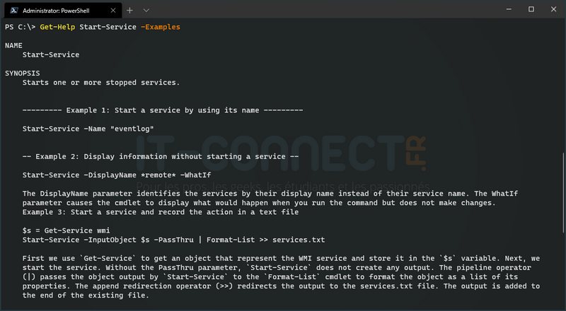 Prenons l'exemple du cmdlet "Start-Service" évoqué précédemment (et choisi au hasard en fait) :