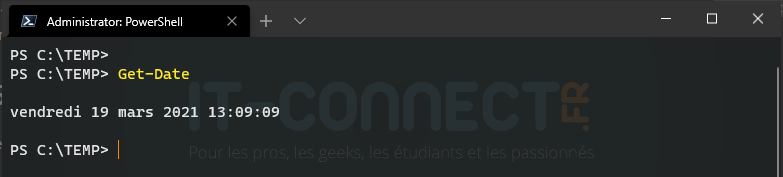 La commande Get-Date sert à récupérer la date et l'heure, sous différents formats. Très utile dans les scripts, notamment pour la gestion de fichiers de logs, mais aussi pour comparer des dates.
