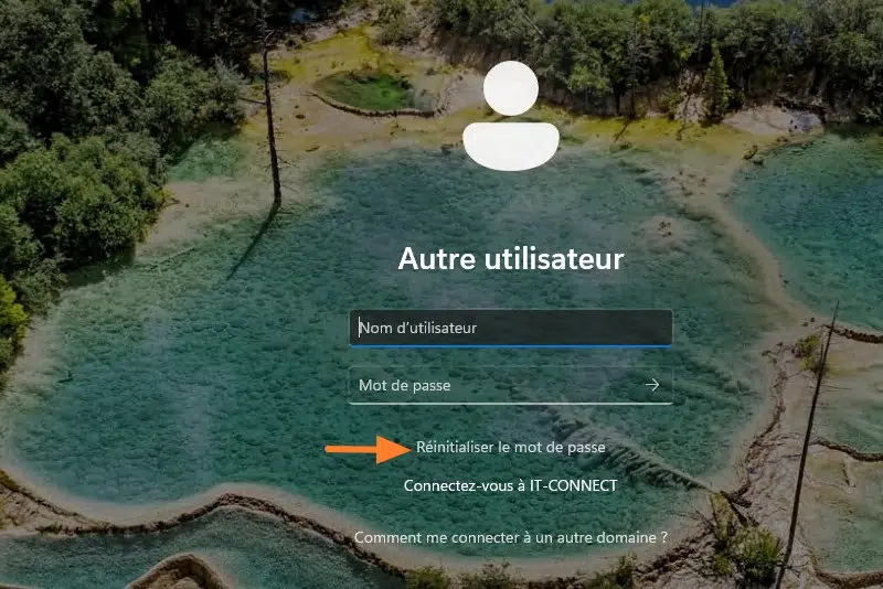 Si vous ne souhaitez pas envoyer de lien par e-mail, ce n'est pas grave, il existe une autre méthode. Directement à partir de l'écran de connexion de Windows, l'utilisateur peut cliquer sur le lien "Réinitialiser le mot de passe" ajouté par l'installation de l'agent Specops pour Windows. Il n'aura qu'à saisir son identifiant et à créer son mot de passe, là encore, après avoir vérifié son identité.