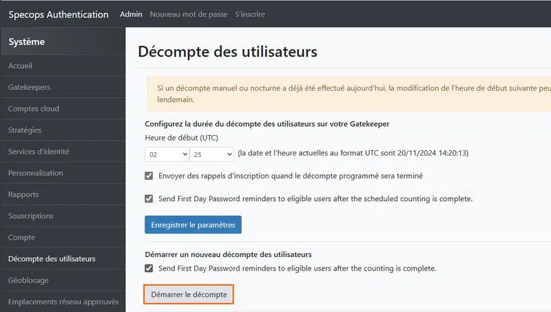 Quand la notification est configurée, vous pouvez envoyer les notifications. Bien entendu, le modèle est à créer une seule fois et peut être personnalisé à tout moment. Dans l'interface de l'outil, nous irons alors dans "Décompte des utilisateurs" pour lancer l'opération via le bouton prévu à cet effet.