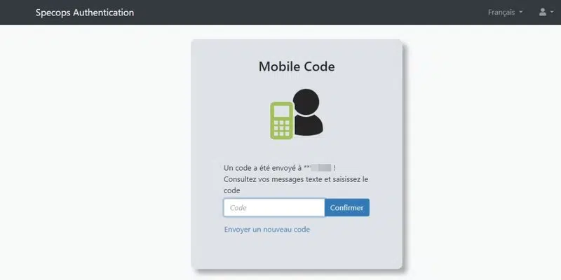 En superposition de l'écran de connexion de Windows, le navigateur sécurisé de Specops va s'ouvrir et inviter l'utilisateur à saisir son identifiant. Puis, à vérifier son identité grâce à un code envoyé par SMS.