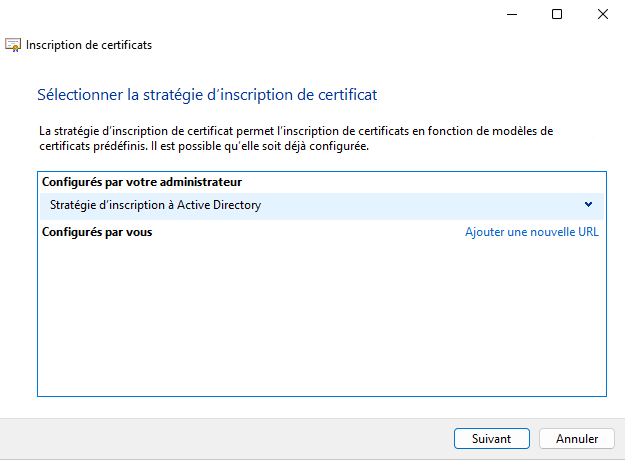 Le modèle étant prêt, nous allons demander un nouveau certificat basé sur ce modèle.