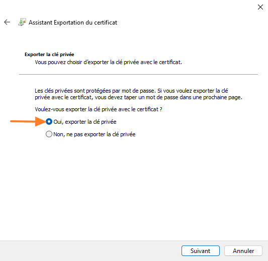 Suivez l'assistant... Choisissez d'exporter la clé privée.