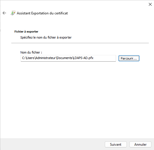 Poursuivez et validez. Vous voilà en possession du certificat LDAPS au format PFX.