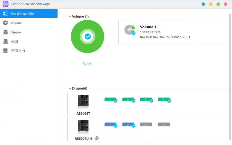 Au sein d'ADM, cliquez sur "Gestionnaire de stockage". Au sein de la vue d'ensemble, vous allez pouvoir visualiser la répartition des disques. Vous devez alors apercevoir l'unité d'expansion dans la liste :