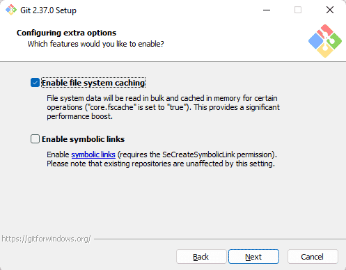 Veillez à ce que l'option "Enable file system caching" soit cochée pour bénéficier du cache et avoir de meilleures performances.