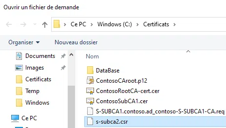 OutputCertRequestFile = "C:\Certificats\s-subca2.csr"