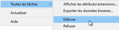 Aucun message ne s'affiche. Rendez-vous à la rubrique "Demandes en attente", où vous verrez apparaître la demande envoyée. En faisant un clic-droit dessus, vous pourrez accéder à "Toutes les tâches" -> "Délivrer".