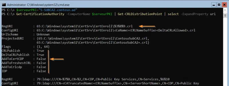 Get-CertificationAuthority -ComputerName $serveurPKI | Get-CRLDistributionPoint | select -ExpandProperty uri