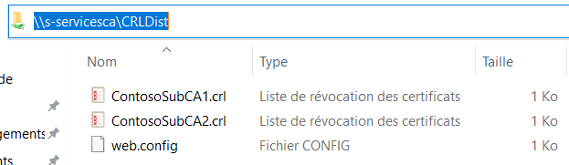 Vous pourrez vérifier que le partage contient bien le fichier de CRL.