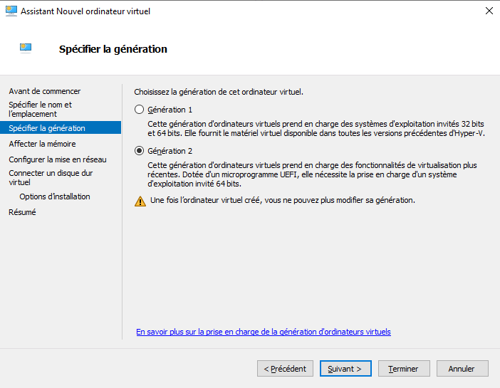 Comme pour Debian, vous pouvez créer une machine virtuelle de "Génération 2" car c'est pris en charge par Kali Linux (ce système étant basé sur Debian, ce n'est pas surprenant).