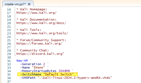 Diverses raisons qui font que nous n'allons pas utiliser le script de déploiement, mais créer notre propre VM à la main (même si nous pourrions le faire avec PowerShell en adaptant le script fournit par Kali Linux).