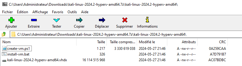 - Un fichier VHDX correspondant au disque virtuel avec Kali Linux préinstallé