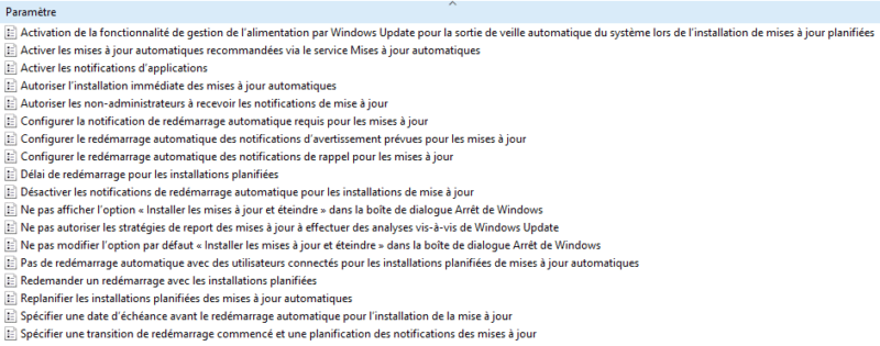 Il s’agit de paramètres historiques regroupés au sein de la sous-catégorie « Stratégies héritées ». Si tous les paramètres sont dans « Windows Update » sur votre infrastructure, cela signifie que les paramètres obsolètes sont mélangés avec les paramètres valides. Ce n’est pas bien grave, c’est seulement gênant visuellement.