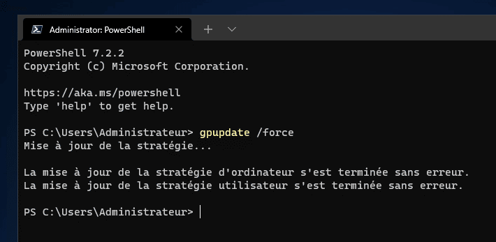 Pour intégrer les modèles d’administration ADMX sur votre contrôleur de domaine, suivez cet article complémentaire : Installer les templates ADMX de Windows 11
