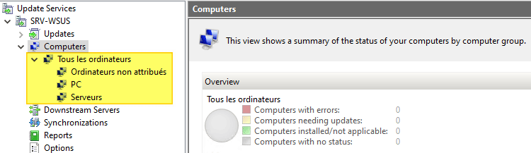 Avec la configuration par défaut de WSUS, lorsqu’une nouvelle machine est liée au serveur WSUS, elle ira se positionner dans le groupe d’ordinateurs nommé « Ordinateurs non attribués ». Ensuite, ce sera à l’administrateur système de déplacer les machines de ce groupe vers un autre groupe.