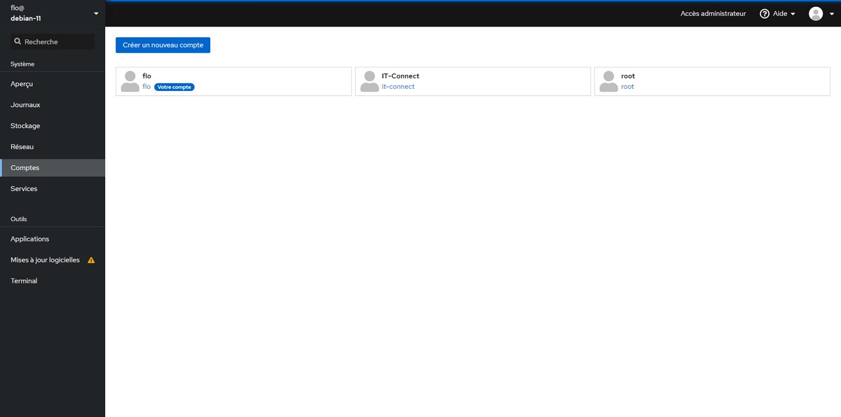 Remarque : les membres du groupe "sudo" sont considérés comme étant administrateur du serveur. Cela va permettre de modifier la configuration du serveur via Cockpit. Pour les comptes "non sudo", l'accès à Cockpit sera possible, mais en lecture seule.
