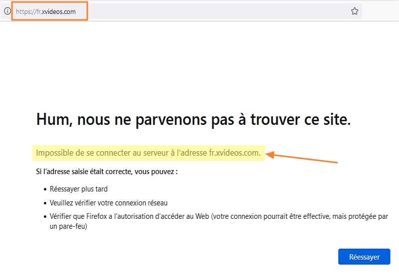 Si on teste de nouveau l’accès à "www[.]xvideos[.]com", on ne devrait plus du tout y avoir accès en temps normal.