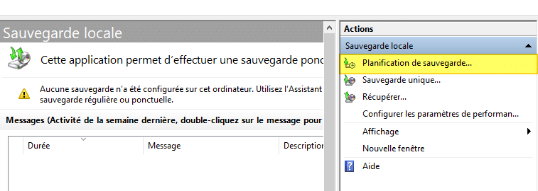 Sinon, la console "Sauvegarde Windows Server" est utilisable en local directement sur un serveur doté d'une interface graphique.