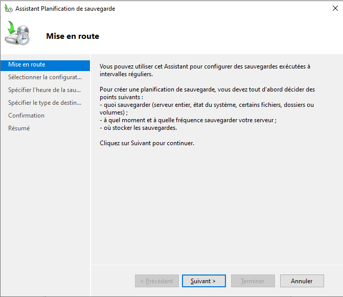 La fonctionnalité étant installée, passons à sa configuration avec pour objectif la sauvegarde d'un contrôleur de domaine Active Directory.