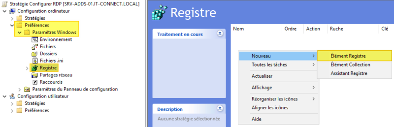 Créez une nouvelle GPO via la console "Gestion de stratégie de groupe". Pour ma part, je vais créer la GPO "Configurer RDP" : je vais utiliser cette GPO tout au long de ce tutoriel. Modifiez la GPO.