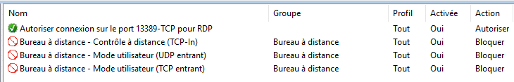 Si vous activez le bureau à distance manuellement sur une machine Windows, la règle "Bureau à distance" intégrée dans le pare-feu Windows sera activée automatiquement. Du coup, si vous créez une règle pour autoriser la connexion sur un port personnalisé, cette règle restera active inutilement (et donc le port ouvert). Dans ce cas, il est préférable de bloquer la connexion sur ce port : c'est que nous allons faire.