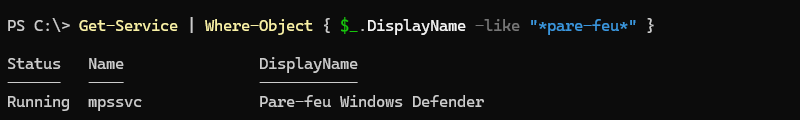 Get-Service | Where-Object { $_.DisplayName -like "*pare-feu*" }
