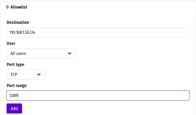Imaginons donc que je ne souhaite rendre disponible que l'interface Web de Firezone et un serveur en RDP.