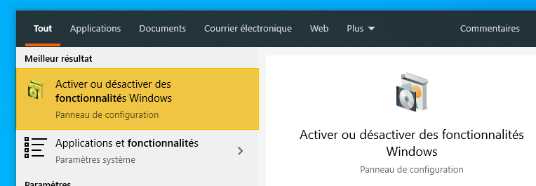 - Cliquez sur "Activer ou désactiver des fonctionnalités Windows".