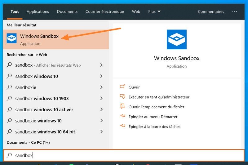 Pour lancer un bac à sable, vous n'avez qu'à rechercher Windows Sandbox sur votre PC et à le lancer.