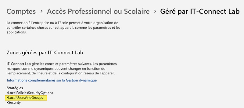Nous pouvons en conclure que la configuration fonctionne ! Tous les utilisateurs membres du groupe "Admins_PC" seront administrateurs des appareils.