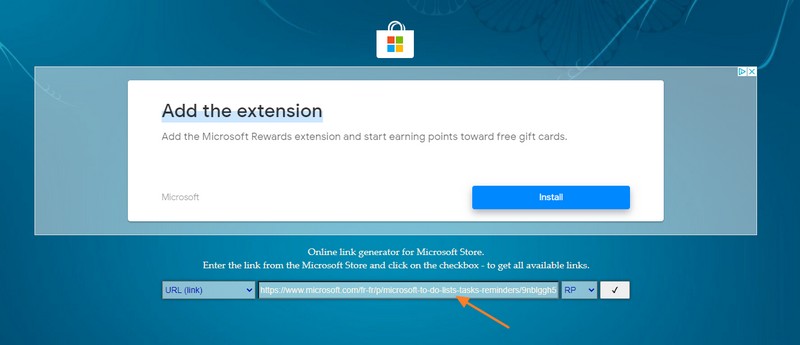 La première étape consiste à générer un lien de téléchargement pour notre application du Microsoft Store et à récupérer le fichier d'installation. Pour cela, je vais prendre l'application Microsoft To-Do comme exemple.