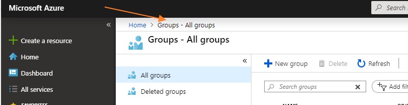 Sur le portail Microsoft Azure, connectez-vous avec un compte Administrateur général de votre tenant. Dans la zone de recherche, saisissez "Groups" et vous allez arriver sur cette page :