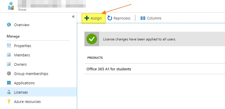 Cliquez sur "Licenses" sur la gauche et ensuite sur "Assign".