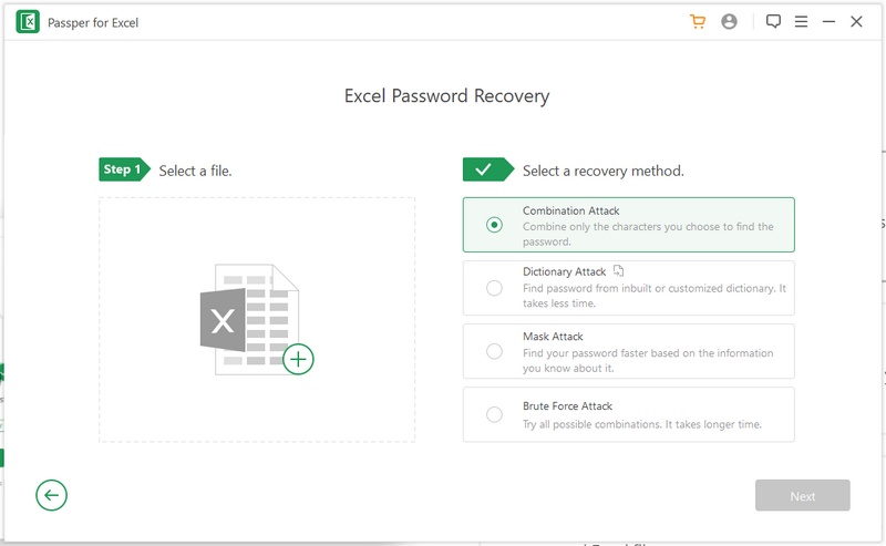 Pas question d'essayer des mots de passe toute l'après-midi. Nous allons demander à Passper for Excel de le faire à notre place, dans l'espoir qu'il retrouve le fameux sésame. Dans le logiciel, il suffit d'accéder à la fonction "Excel Password Recovery". Quatre modes sont proposés.
