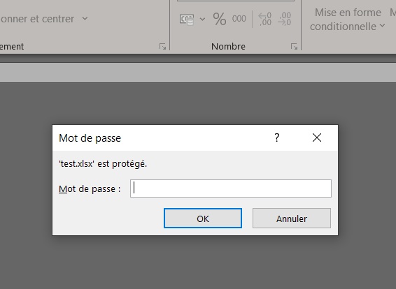 Une fois le mot de passe trouvé par le logiciel, il est affiché à l'écran et il ne reste plus qu'à le saisir à l'ouverture du fichier Excel 🙂