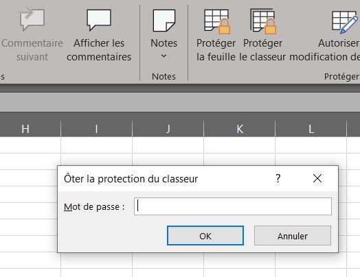 Note : si vous souhaitez réaliser l'opération sur un fichier protégé par mot de passe (à l'ouverture), vous devez ôter ce mot de passe avant de pouvoir retirer la protection sur le contenu.