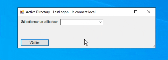 En couplant l'utilisation de PowerShell à Windows Forms, il est possible de développer des scripts interactifs très pratiques et liés à différents services, dont l'Active Directory. L'exemple ci-dessous est un bon exemple, tout en étant simple : le script permet de consulter la date de dernière connexion d'un utilisateur Active Directory. La liste déroulante est alimentée de façon dynamique grâce au résultat de la commande "Get-ADUser".
