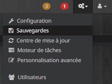 Pour la configuration, il faut cliquer sur l'icône paramètres puis sur "Sauvegardes".