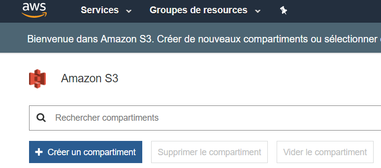 Cliquez sur "Créer un compartiment" (bucket) pour créer et configurer un nouvel espace de stockage.