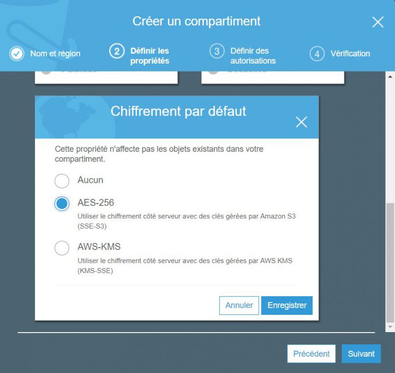 Pour des raisons de sécurité, je vous recommande d'activer le chiffrement AES-256 sur votre compartiment, comme ceci :