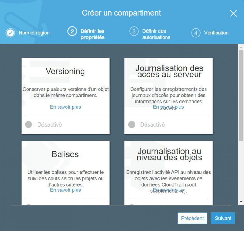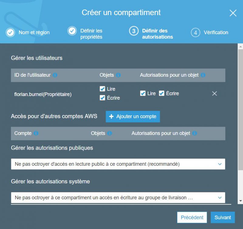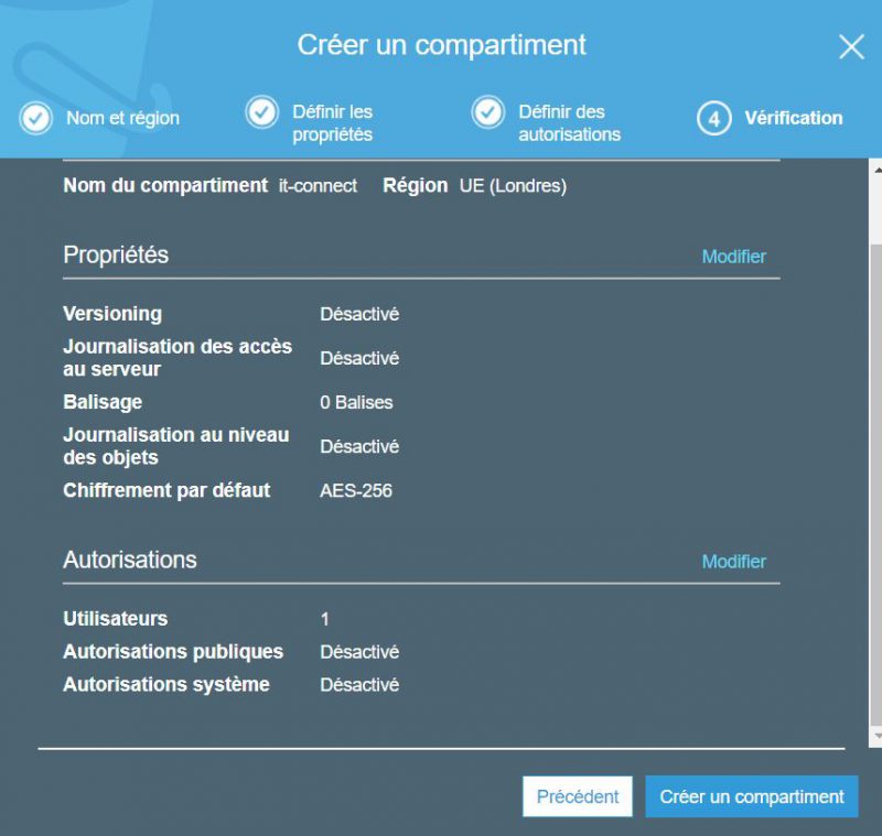 Vérifiez que le paramétrage du bucket vous convient et validez.