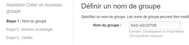 Donnez un nom à votre groupe, par exemple "NAS-ASUSTOR".
