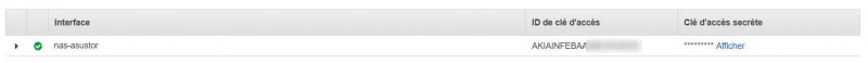 Dans la console AWS, s'affiche l'ID associé à la clé d'accès ainsi que le secret associé à cette clé. Copiez les deux informations car il va falloir renseigner ces données dans la config du NAS pour paramétrer la sauvegarde Amazon S3.
