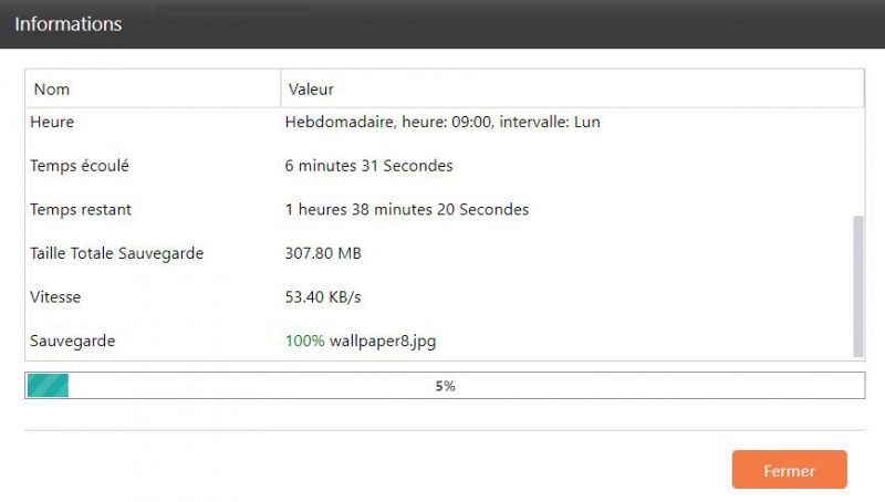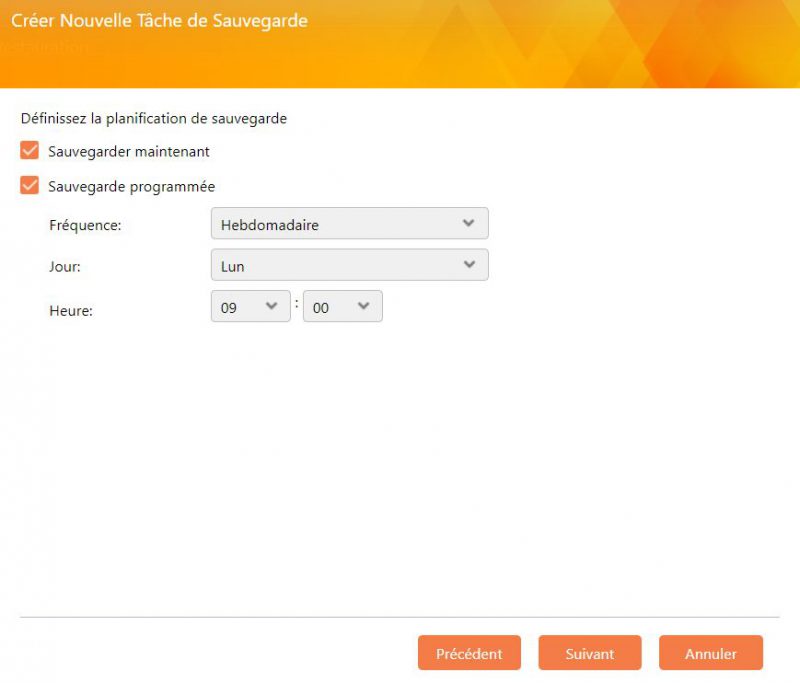 Pour que la tâche de sauvegarde soit automatisée, configurez la planification selon vos besoins.
