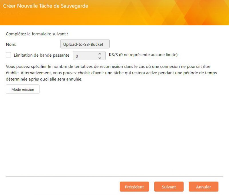 Donnez un nom à ce job de sauvegarde, par exemple "Upload-to-S3-Bucket".
