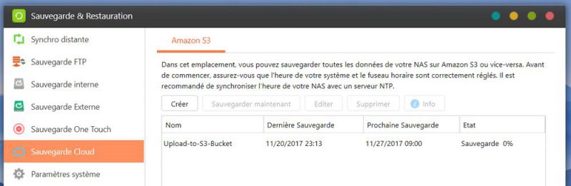 A ce jour, l'ADM intègre à son outil de sauvegarde la possibilité d'exporter des données sur le Cloud Amazon S3. A l'inverse, vous pouvez sauvegarder votre espace de stockage Amazon S3 sur votre NAS.