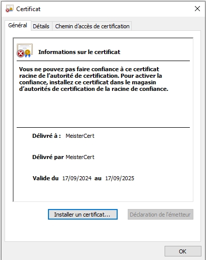 - La variable « $certname » contient le nom du certificat (ici « MeisterCert »).