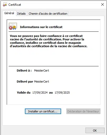 On peut d’ailleurs vérifier qu’il s’agit du bon certificat en l’ouvrant.