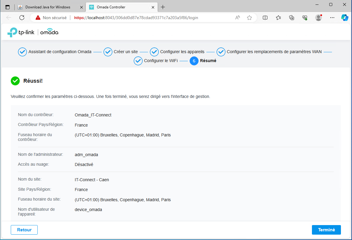 Une fois l'installation terminée, le contrôleur Omada sera initialisé sur le serveur et nous pourrons commencer la configuration avec un navigateur web.